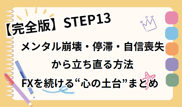 メンタル・習慣化・自己管理・継続力 をまるっと整えて、FXを長く続けられる“心の土台”を作っていくよ。